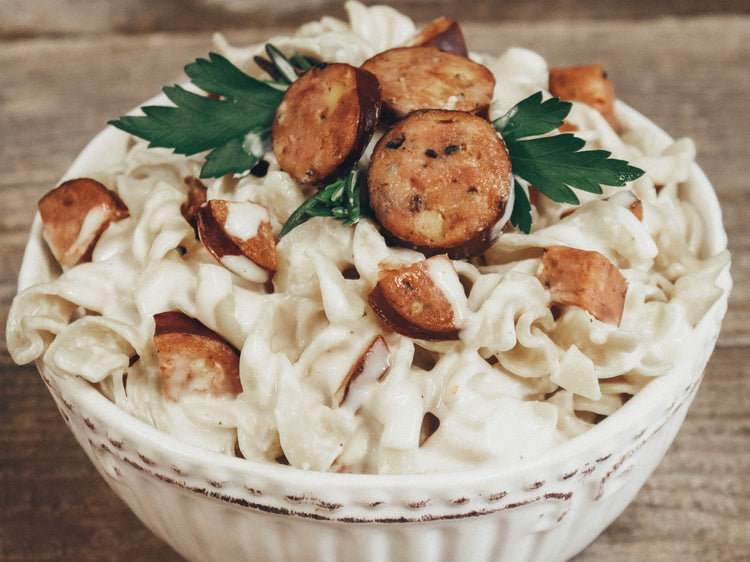- mix the sausage in with the cooked noodles and sauce and you are FINISHED!